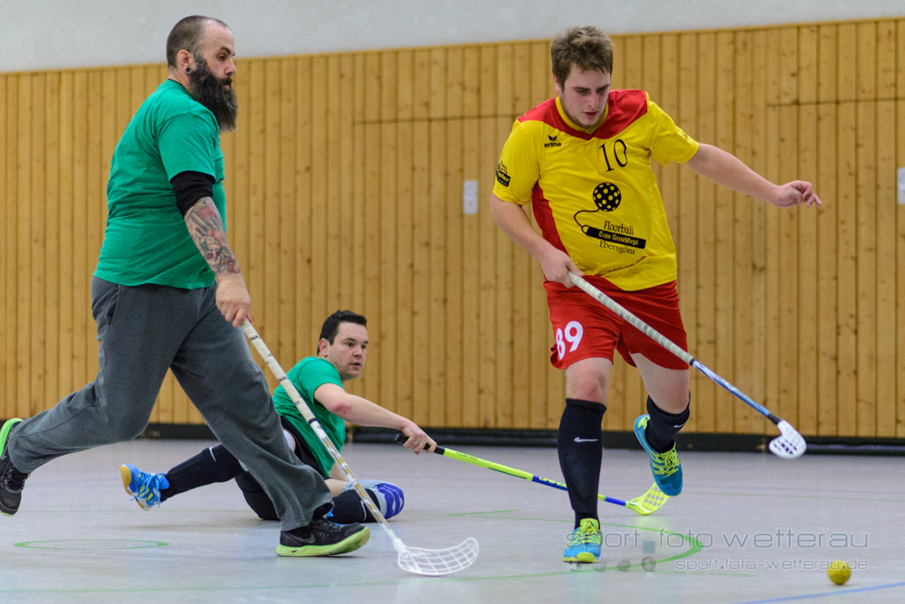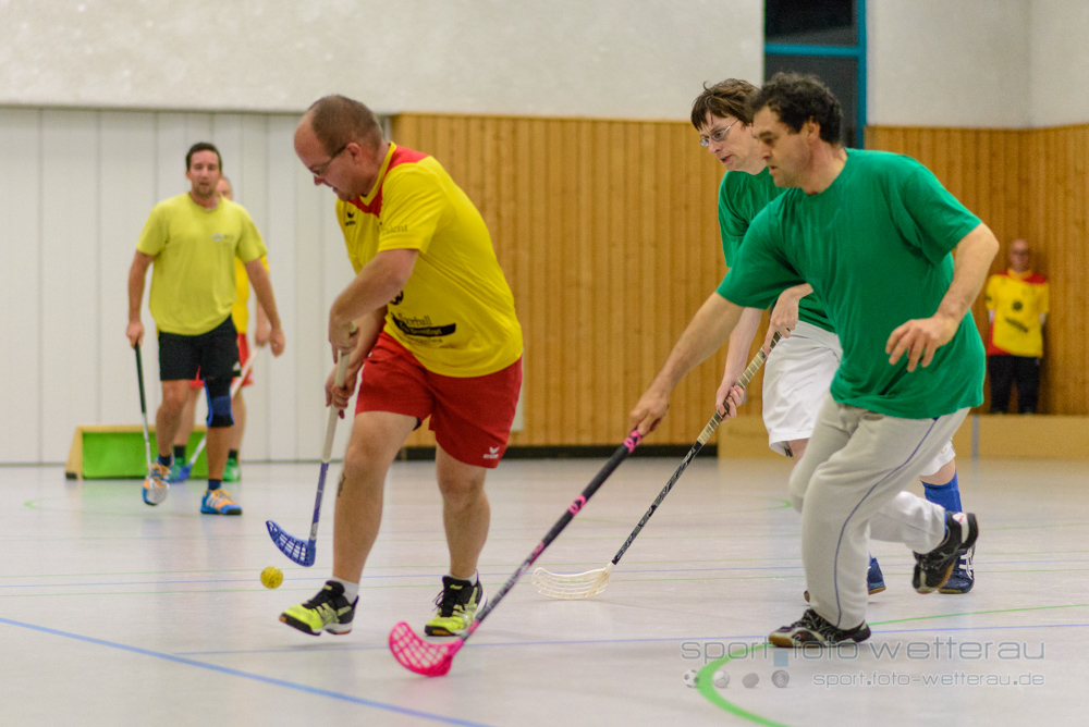 Die Dreschflegel vom TSV Tollwut Ebersgöns traten in voller 10-Mann-Stärke in ihren schicken gelb-roten Trikots an. Das Heimteam hatte seinen großen Spielerkader entsprechend angepasst. Gespielt wurde nach den Regeln der Hockeybuben, d.h. mit einem speziellen Hartplastikball statt mit einem fluffigen Floorball und auf wesentlich kleinere Hockeytore als beim Floorball. Die Spielzeit betrug 3 x 20 Minuten und auch leichter körperlicher Kontakt wurde nicht gleich abgepfiffen. Schiedsrichter und Zeitnehmer wurden von der Heimmannschaft gestellt. Auf dem Spielfeld standen sich jeweils 4 Feldspieler und ein Tormann gegenüber, was einen ständigen Wechsel im 2- bis 3-Minutentakt mit frischen Spielern erlaubte und somit für ein außergewöhnlich schnelles und rasantes Spiel sorgte.